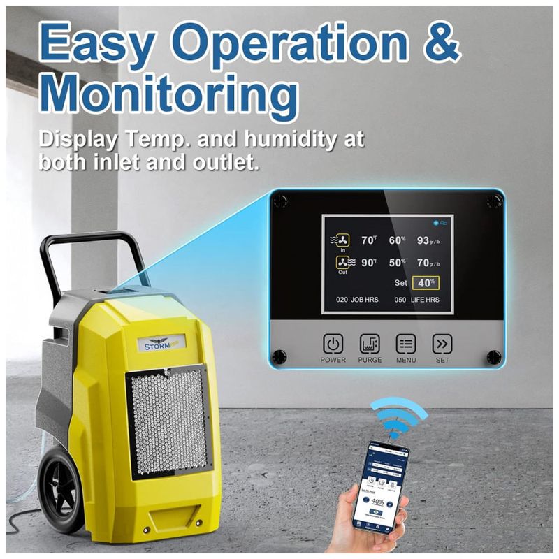 Dispondo de uma bomba de condensado para serviço pesado interna de altura de drenagem de 4,48 metros conectada com uma mangueira de drenagem de 6,49 metros de comprimento incluída, o que facilita a drenagem da condensação automaticamente em qualquer lugar. Este desumidificadorpossui reinicialização automática após quedas de energia, descongelamento automático, drenagem contínua bomba embutida para controle de umidade sem esforço.