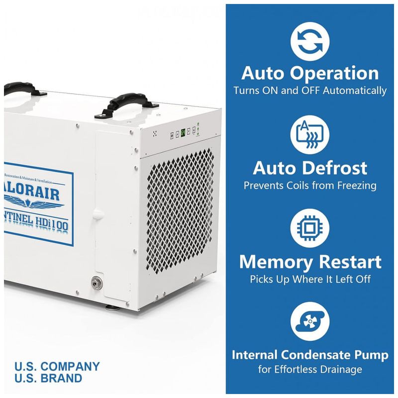 Além disso, o Desumidificador Sentinel HDi100 possui um processo de descongelamento rápido e eficiente que permite trabalhar a uma temperatura baixa de 2,2 graus Celsius. Se for detectado gelo nas bobinas, um ciclo de degelo automático será executado para evitar o acúmulo de gelo e problemas associados a esse acúmulo. Isso faz com que a unidade funcione de forma contínua e eficiente sem paradas periódicas durante o processo de degelo, economizando energia e fazendo com que a unidade dure mais.