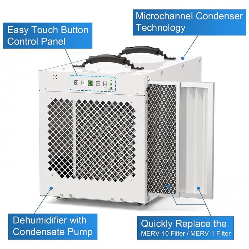 O DesumidificadorSentinel HDi100 com bomba de 104 litros é a escolha perfeita para ambientes amplos de até 269 metros quadrados. Com uma capacidade de remoção de água de até 104 litros por dia na saturação e 47 litros por dia na AHAM, este desumidificador resistente pode ser utilizado em espaços rastejantes, porões, armazéns, escritórios, fábricas, lojas, apartamentos, áreas de armazenamento, restaurantes, bares e museus.