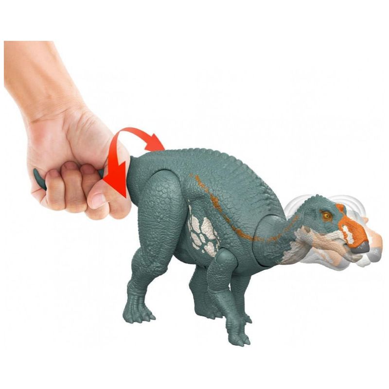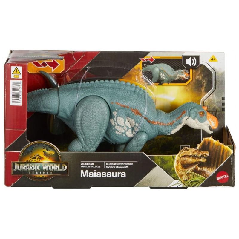 O Mattel Jurassic World Rebirth Wild Roar Maiasaura é uma figura de dinossauro articulada de porte médio com cerca de 31,7 cm de comprimento, inspirada no filme Jurassic World Rebirth. O brinquedo traz função de ataque controlado pela cauda com movimento de mordida e rugido, permitindo alterar a direção do golpe ao girar a cauda para simular diferentes situações de batalha.?