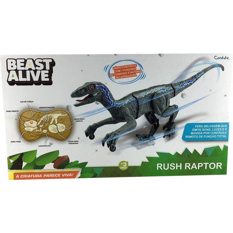 Desperte a emoção pré-histórica com o Dinossauro Beast Alive Rush Raptor! Este incrível dinossauro com controle remoto oferece movimentos realistas e som assustador, proporcionando uma experiência autêntica de um predador em ação. Com 7 funções controladas remotamente, o Rush Raptor pode andar, movimentar partes do corpo e até rugir como um verdadeiro dinossauro. Ele funciona com uma bateria recarregável via USB (inclusa) e requer 2 pilhas AA para o controle (não inclusas). Prepare-se para horas de diversão cheia de aventura e emoção com o Beast Alive Rush Raptor!