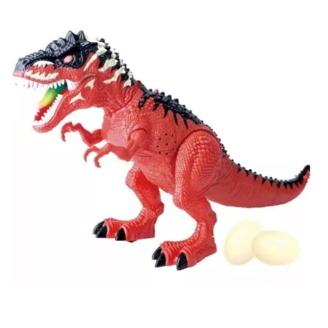 Dinossauro de Brinquedo que Anda Faz Sons e e Bota Ovo Vermelho