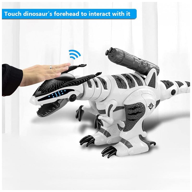 Controle de toque Toque na testa do seu dinossauro RC para interagir com ele, ele balançará a cabeça, abanando o rabo e fará som ou use o controle remoto para dar comandos ao seu brinquedo de dinossauro robô. Fácil de jogar para crianças de 3 anos ou mais.