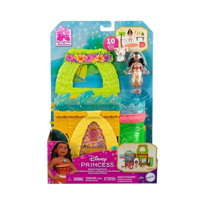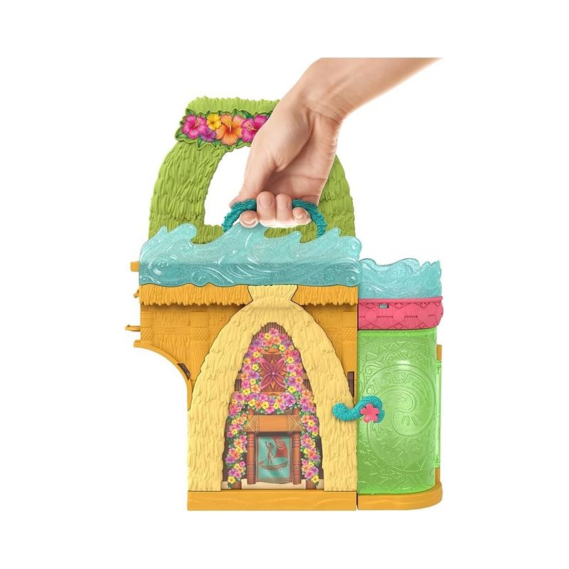 Inspirado no filme Moana, da Disney, este Mini Castelo empilhável captura toda a beleza e o clima da ilha onde a personagem vive. O conjunto se abre para revelar uma charmosa casa de bonecas em escala pequena, com várias áreas de brincadeira reconhecíveis do filme, além de uma boneca Moana com aproximadamente 8,89 cm, um amigo animal, móveis e acessórios que tornam a experiência ainda mais completa.