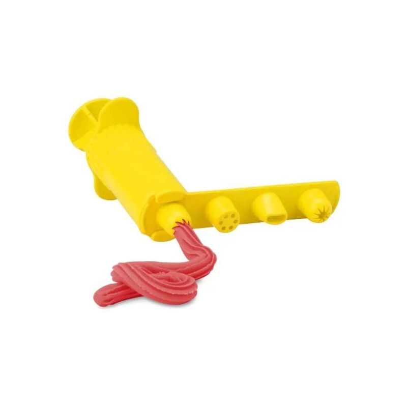 Conteúdo da Embalagem: seringa com ponta aplicadora de massa, faca sem corte, pegador e rolinho, 4 potinhos de massinha de 50g cada.
