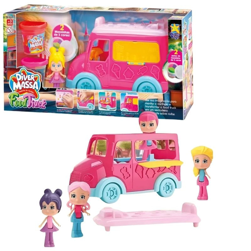 Leve a imaginação da criançada para passear com o Food Truck Diver Massa, a novidade divertida da Divertoys! Um brinquedo completo para brincar de chef, criar comidinhas de massinha e servir deliciosas aventuras em um restaurante sobre rodas! Tamanho do brinquedo 21 x 13cm. Características: - Conteúdo da Embalagem: 1 Food Truck com teto removível e moldes nas laterais e no teto