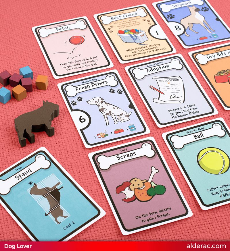 Durante o jogo, você estará buscando cartas, coletando ossos e reunindo comida para seus adoráveis cães. Você irá resgatá-los do abrigo, treiná-los com novos truques e valorizar suas características únicas.