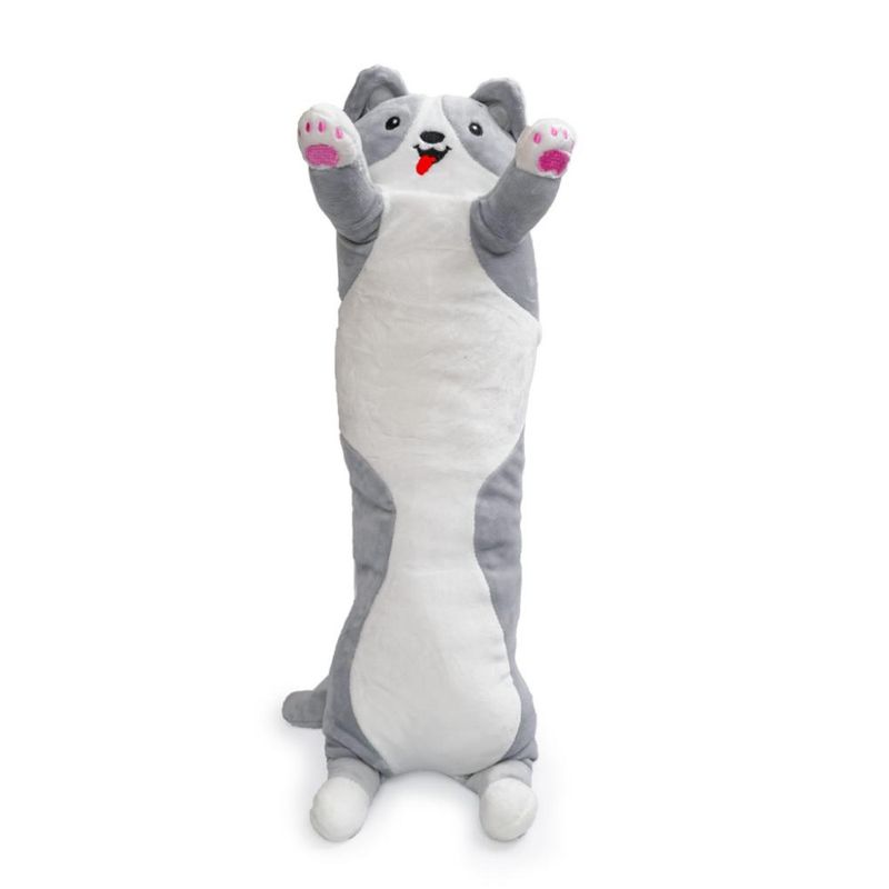 Almofada em formato de cachorro fofo, ideal para abraçar, decorar ou usar como travesseiroProduzida com pelúcia hipoalergênica e enchimento em fibra siliconadaDesign acolhedor e divertido, disponível nas cores caramelo e cinzaNão possui luzes, som ou movimentoRecomendado para crianças a partir de 2 anosProduto certificado pelo Inmetro (Registro 00125/2021)\n\nIdade recomendada:2-4 anos;Composição/Material:Plástico;Funciona com pilhas:Não;Brinquedo com luz:Não;Brinquedo com som:Não;Dimensões:69,7x15x15 cm;Peso:1 kg;Código de Barras:7898506727926;Garantia do Fornecedor:3 Meses contra defeito de fabricação;