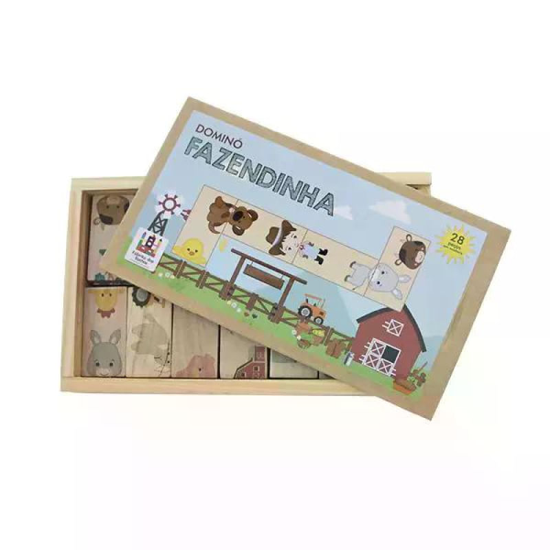 Dominó no tema de fazendinha, contendo uma caixa e 28 peças de 6 x 3 cm cada. Confeccionado artesanalmente em madeira de reflorestamento. Nossos brinquedos são elaborados para atender diversas idades e feitos a mão.DADOS TÉCNICOSDominó FazendinhaIdade Recomendada: + 3 anos