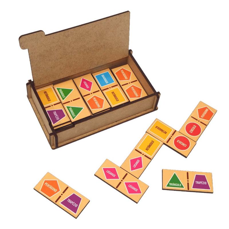 O Dominó divertido Figuras Geométricas é composto por 1 caixa de 22,5 × 8 × 5 cm + 28 PeçasFabricante: Artesanato ManinhoMaterial: MDF Embalagem: PVC Encolhível Dimensões do produto embalado: 22,5 × 8 × 5 cmPeso aprox.: 0,315 kg A partir de 3 anos
