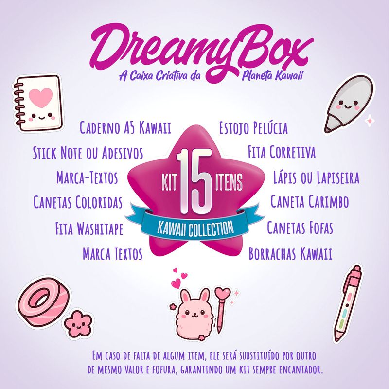 DREAMYBOX 15 Itens Kawaii Collection - Papelaria Fofa Criativa