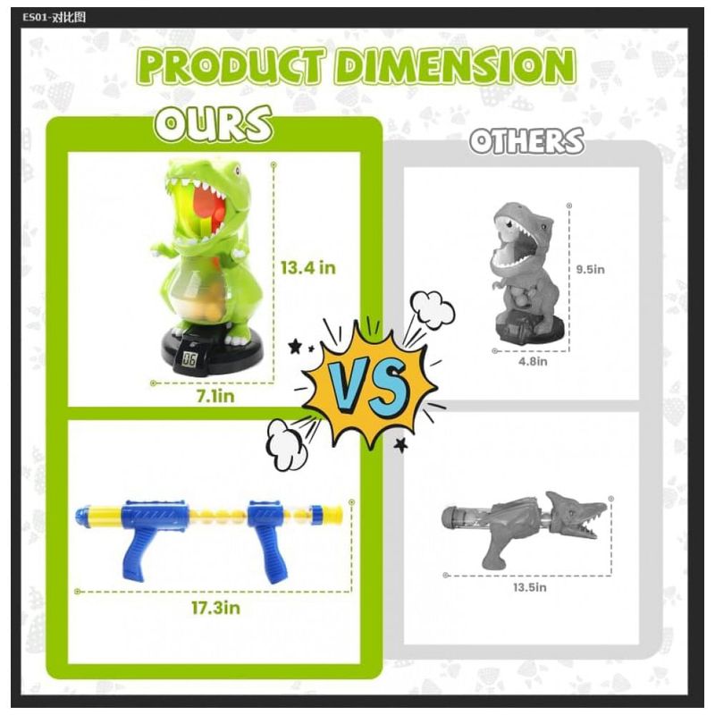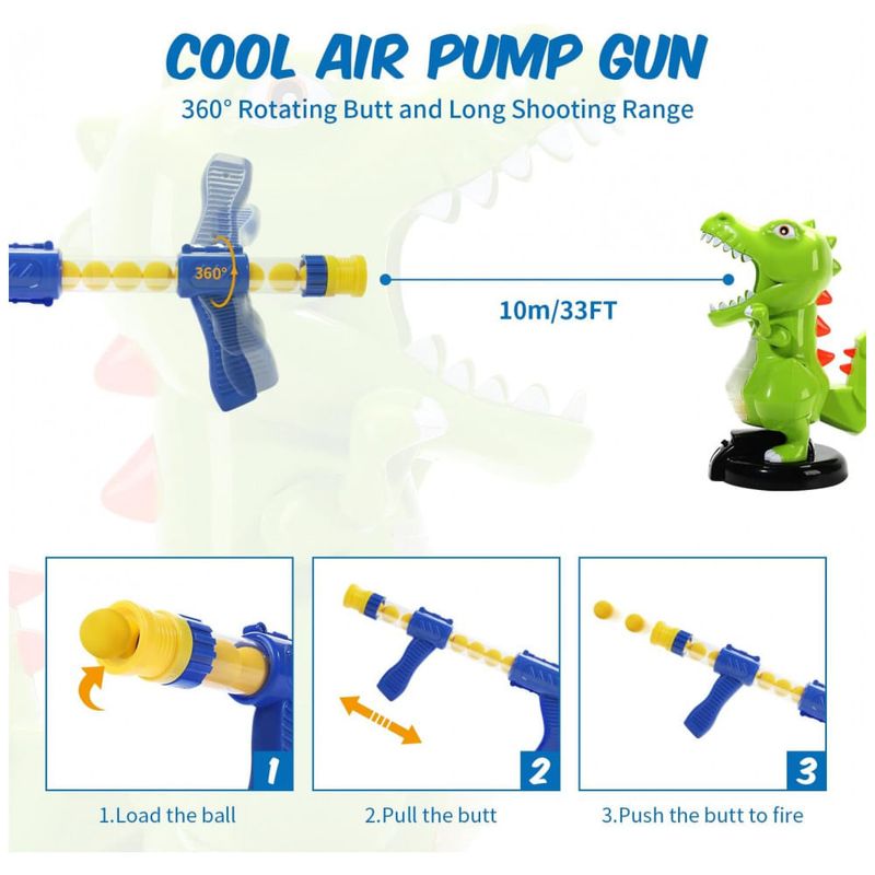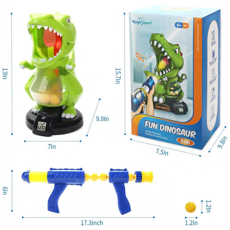 O brinquedo eletrônico de tiro dinossauro EagleStone é a adição perfeita para o arsenal de diversão das crianças. Com um alvo dinossauro, 24 bolinhas de espuma e uma pistola de ar manual, este jogo proporciona entretenimento seguro e interativo para crianças a partir de 6 anos. O alvo possui um placar digital LCD que contabiliza pontos toda vez que uma bolinha atinge a língua do dinossauro, emitindo som e incentivando a competição saudável entre os jogadores, seja em grupos ou individualmente. A pistola de ação manual dispara bolinhas de EVA, um material leve, seguro e inofensivo, que podem ser coletadas dentro da barriga do dinossauro para fácil reciclagem pelo rabo. Além de garantir muita diversão, o design colorido e o material ABS de alta qualidade garantem durabilidade, segurança e resistência ao desgaste, com peças lisas e arredondadas para evitar acidentes. Este brinquedo também estimula a coordenação motora olho-mão, sendo uma excelente opção para momentos dentro ou fora de casa. Ideal para festas de aniversário, Natal e outras celebrações, é um presente incrível para meninos, meninas, adolescentes e até adultos que desejam aliviar o estresse com uma atividade divertida e interativa.