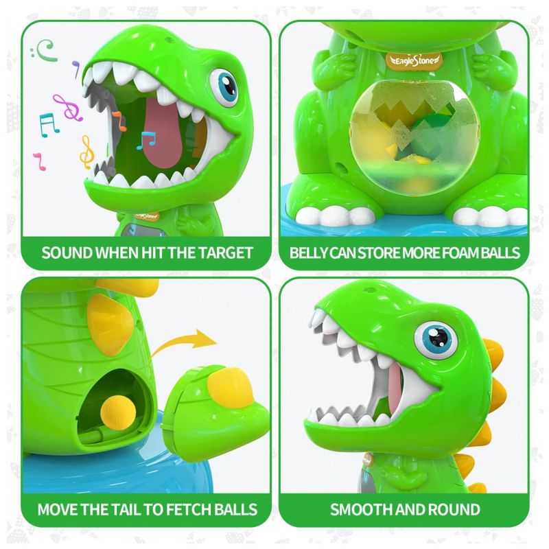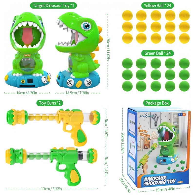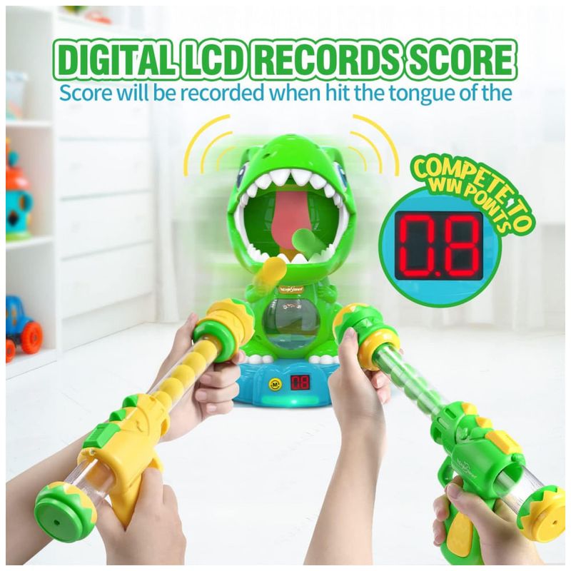 Jogo Eletrônico de Tiro Dinossauro EagleStone: Divirta-se com este incrível kit de brinquedo que traz um alvo eletrônico em forma de dinossauro com luzes e sons, acompanhado de 2 pistolas lançadoras e 48 bolinhas de espuma EVA seguras. Perfeito para brincadeiras internas e externas, oferecendo múltiplos modos de tiro para todas as idades. O modo estático é ideal para crianças pequenas e iniciantes, enquanto o modo móvel utiliza uma roda universal que se move automaticamente para evitar obstáculos, proporcionando um desafio extra para os mais avançados. Este conjunto é um presente ideal para crianças de 6 a 8 anos. Sistema de Pontuação Automática e Névoa Spray: Quando a bolinha atinge a língua do dinossauro faminto, um som de comemoração é acionado e 1 ponto é adicionado ao visor LCD. A boca do dinossauro acende e solta uma névoa azul para criar uma atmosfera empolgante durante o jogo indoor. Para Jogos em Grupo: As 2 pistolas de espuma e as 48 bolinhas leves permitem que crianças competam com amigos e familiares, tornando-o perfeito para brincadeiras em grupo. O brinquedo é recomendado para meninos de 8 a 12 anos e garante horas de diversão. Qualidade e Sustentabilidade: Os alvos das pistolas são confeccionados em material ABS de alta qualidade, com acabamento liso e seguro. Fabricado com plástico reciclado certificado GRScertified e materiais orgânicos, o brinquedo é livre de BPA, atóxico, durável, reutilizável e ecológico, alinhando diversão com responsabilidade ambiental. Ideal para presentear em aniversários, Natal, Halloween e outras celebrações.