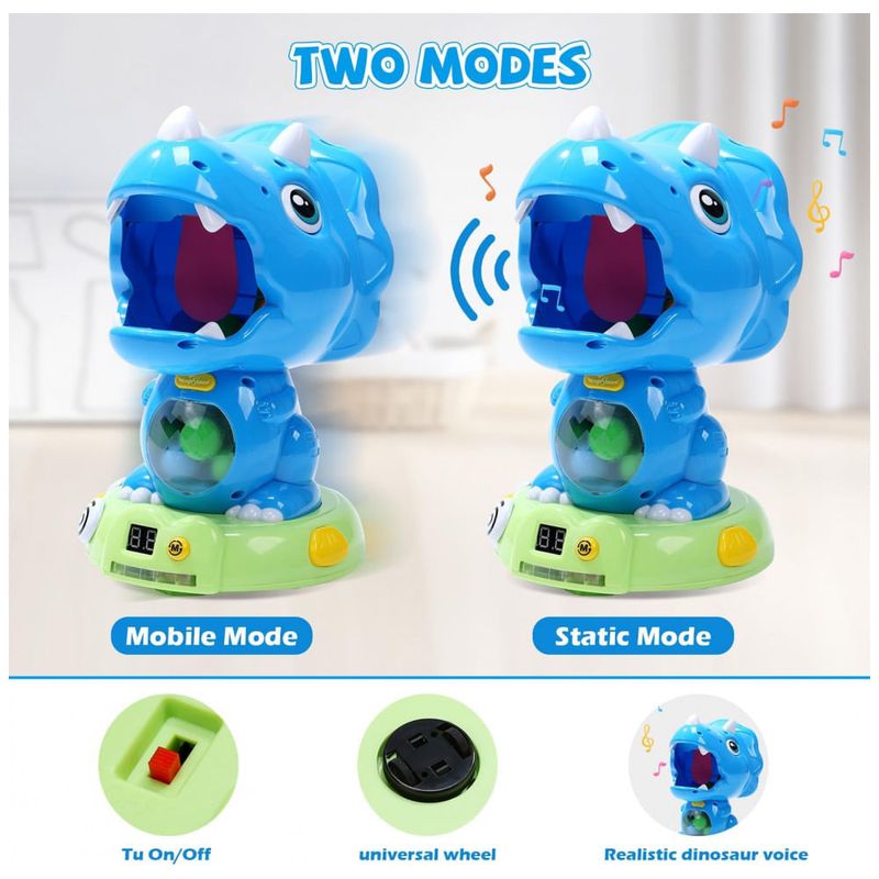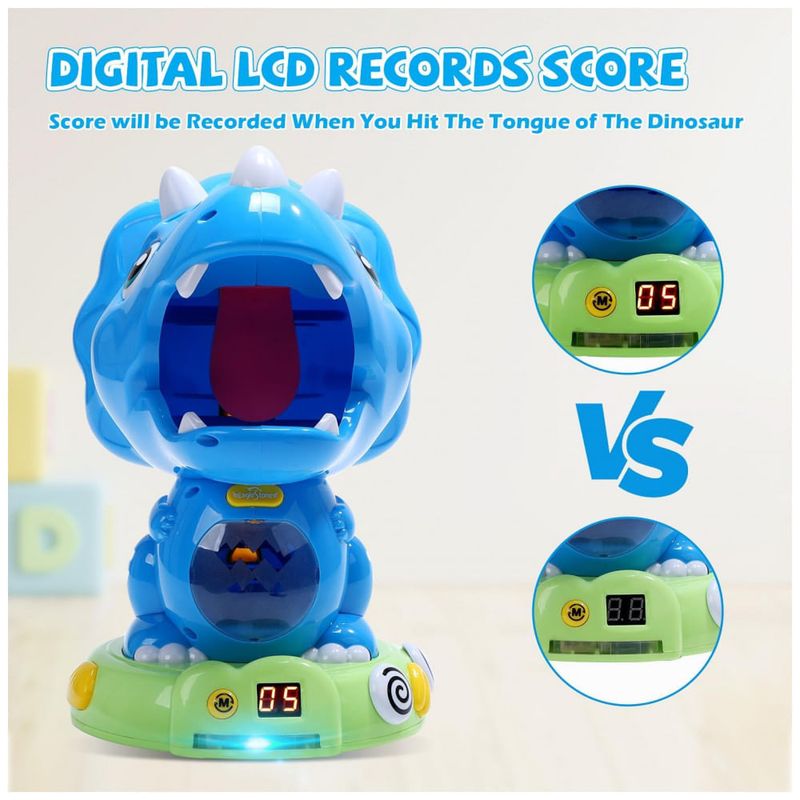 O painel digital LCD registra a pontuação, emitindo um som a cada acerto na língua do dinossauro e adicionando um ponto no placar, ideal para competições entre amigos e diversão em grupo. Este brinquedo promove o desenvolvimento da coordenação motora e o trabalho em equipe, tornando-se o presente perfeito para meninos e meninas de todas as idades apaixonados por dinossauros e aventuras.