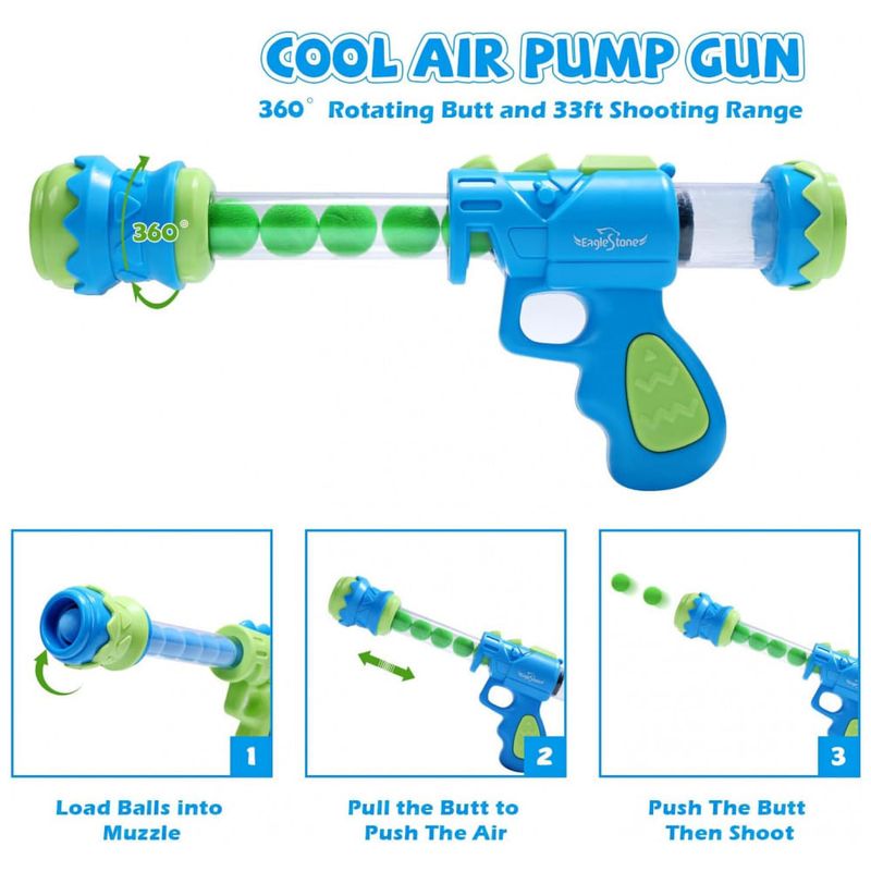 O kit versátil inclui 48 bolinhas de espuma EVA e 2 pistolas de ar com sistema de bomba aprimorado, oferecendo uma variedade de jogos de tiro repletos de desafios e diversão sem fim. A segurança é prioridade: as pistolas são feitas de ABS ecológico, enquanto as bolinhas de espuma EVA são leves, inofensivas e recolhidas facilmente na barriga do dinossauro, facilitando a reciclagem e evitando qualquer dano.