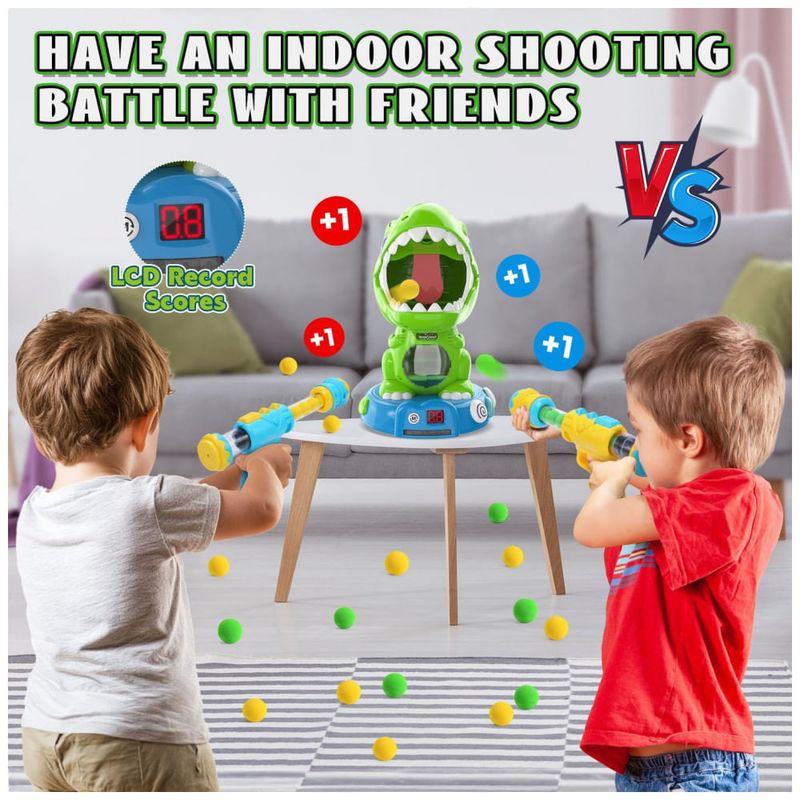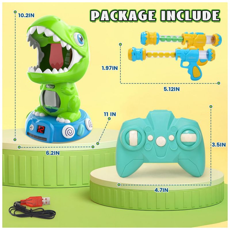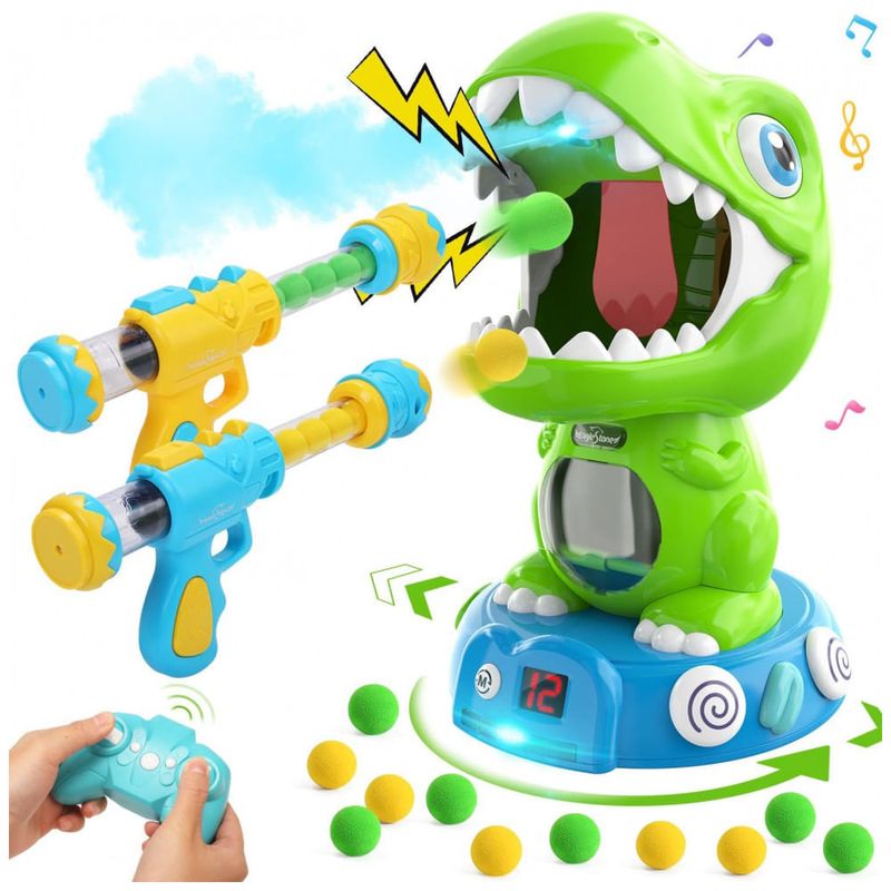 Descubra a emoção do jogo dinâmico com o Dinossauro de Tiro Controlado por Controle Remoto da EagleStone, criado especialmente para crianças a partir de 6 anos! Este brinquedo oferece três modos de jogo únicos que garantem diversão e desafio: no Modo Estático, é mais fácil mirar e acertar o alvo, perfeito para iniciantes; no Modo Controle Remoto, o dinossauro responde a comandos para avançar, recuar e virar, proporcionando uma experiência realista e interativa; e no Modo Demonstração Automática, o dinossauro evita obstáculos automaticamente, tornando cada disparo uma aventura emocionante. O sistema eletrônico de pontuação acompanha cada acerto na língua do dinossauro, exibindo a pontuação em uma tela LED e ativando efeitos especiais de fumaça e luz para celebrar cada sucesso. Após cinco acertos, o dinossauro vibra com uma comemoração que incentiva a autoconfiança da criança. O conjunto completo inclui o alvo dinossauro automático, controle remoto 2.4GHz para controle suave e responsivo, bateria recarregável de alta duração, duas armas de ação por bomba com 48 munições de EVA macias, óculos de proteção e uma pipeta. Ideal para crianças de 5 a 8 anos, este brinquedo é perfeito para festas, aniversários, Natal e outras ocasiões, promovendo a coordenação motora e a habilidade de mira. Divirta-se tanto em ambientes internos quanto externos, estimulando a concentração e o aprendizado através do jogo. Com bateria recarregável de 500mAh, a diversão dura horas, proporcionando momentos inesquecíveis para meninos e meninas.