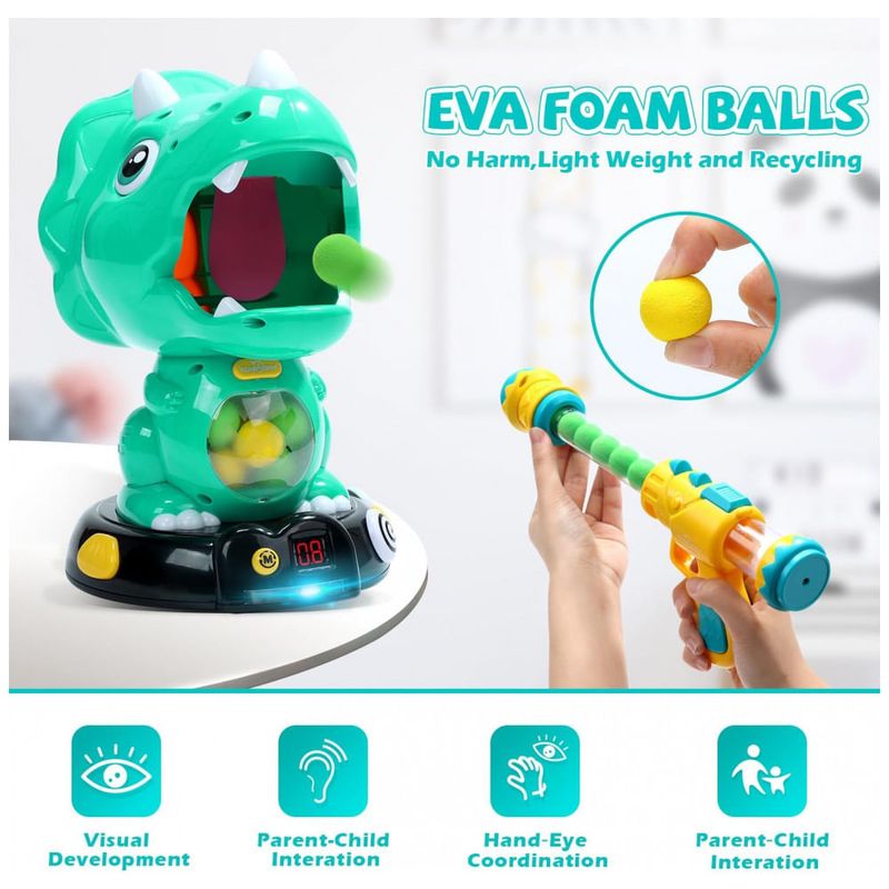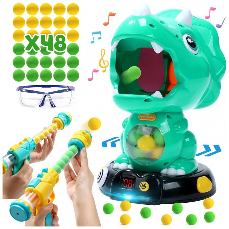 Experiência Imersiva com Dinossauros: Entre em um mundo de dinossauros realistas com a Aventura de Tiro Triangular Terrors da EagleStone. Com o formato de um feroz dinossauro tricerátops, este brinquedo transporta crianças para uma era antiga, proporcionando uma emocionante aventura de tiro! Modo Dinâmico Inovador: O Jogo de Tiro Roaring Triassic Dino oferece 2 modos de operação: modo estático e modo dinâmico. Equipado com rodas omnidirecionais inteligentes, ele evita obstáculos com facilidade, adicionando uma camada extra de desafio. É um jogo de tiro com modo dinâmico raro no mercado! Kit Multifuncional de Jogo de Tiro: Com 48 bolas de espuma EVA e 2 armas de bomba de ar aprimoradas, o alvo Roaring Triassic Dino entrega muito mais que diversão com armas de espuma, proporcionando uma experiência diversificada de tiro. Brinquedo Seguro para Crianças: A segurança do seu filho é nossa prioridade máxima. As armas de bomba de ar são feitas de material ABS ecológico e o design em volta garante uma experiência segura de tiro. As bolas leves e inofensivas de espuma EVA são coletadas dentro da barriga do dinossauro, facilitando a reutilização sem causar danos a ninguém ou ao ambiente. Estimule a Diversão Competitiva: O display digital LCD registra os pontos, e a cada bola de espuma que atinge a língua do dinossauro Triássico, um som é acionado e 1 ponto é adicionado ao placar. Ideal para competições multiplayer, traz um jogo de tiro estilo carnaval que diverte crianças em festas e encontros! Presente Ideal para Natal e outras ocasiões especiais.