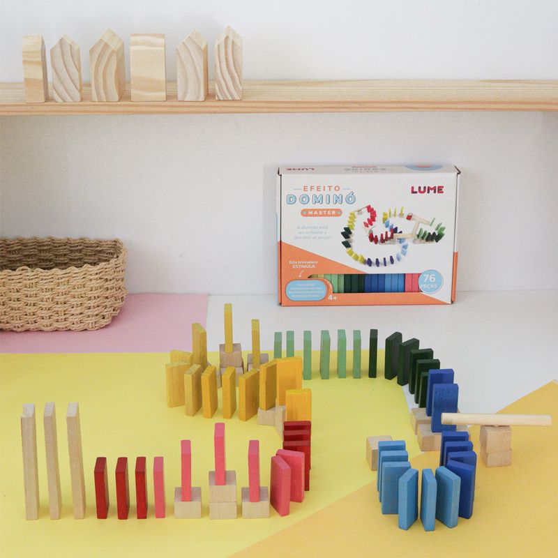 Desenvolve de forma divertida a paciência, a criatividade, a percepção espacial, a motricidade fina e o pensamento estratégico.Dica: Cada montagem pode ter um formato diferente! É possível juntar as peças do Efeito Dominó Master com as peças das Corridas de Bolinha da Lume, formando megacircuitos. Habilidades DesenvolvidasCoordenação motoraCriatividade e imaginaçãoFoco e atençãoRaciocínio lógico Contém: 76 peças de madeira que formam divertidos e diferentes circuitos com engrenagens, canaleta, bolinha, ponte, torres e o que a imaginação for capaz de inventar.Material: Madeira maciça. Acabamento: tinta e cera atóxicas.Fabricante: LUMEEmbalagem: 26,5x20,5x4 cmPeso aprox.: 1,000 kg A partir de 4 anos Garantia: 3 (três) meses*Evite molhar o brinquedo, sua matéria prima é madeira e pode vir a danificar.**Pode ocorrer variação nas cores ou detalhes das imagens apresentadas para o produto. ***Pode conter partes pequenas que podem ser engolidas.