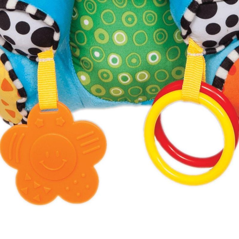 A Pelúcia Gatinho de Atividades da Buba é um brinquedo completo multiuso que pode ser pendurado no carrinho ou no berço como enfeite, entretenimento ou simplesmente pode ser entregue a criança para brincar com segurança. Os bebês novinhos só enxergam cores contrastantes, por isso é ideal para o desenvolvimento visual dos pequenos. Possui mordedor, uma argola que ao puxar e soltar a pelúcia vibra, as pernas e orelhas fazem barulho suave de amassadinho.