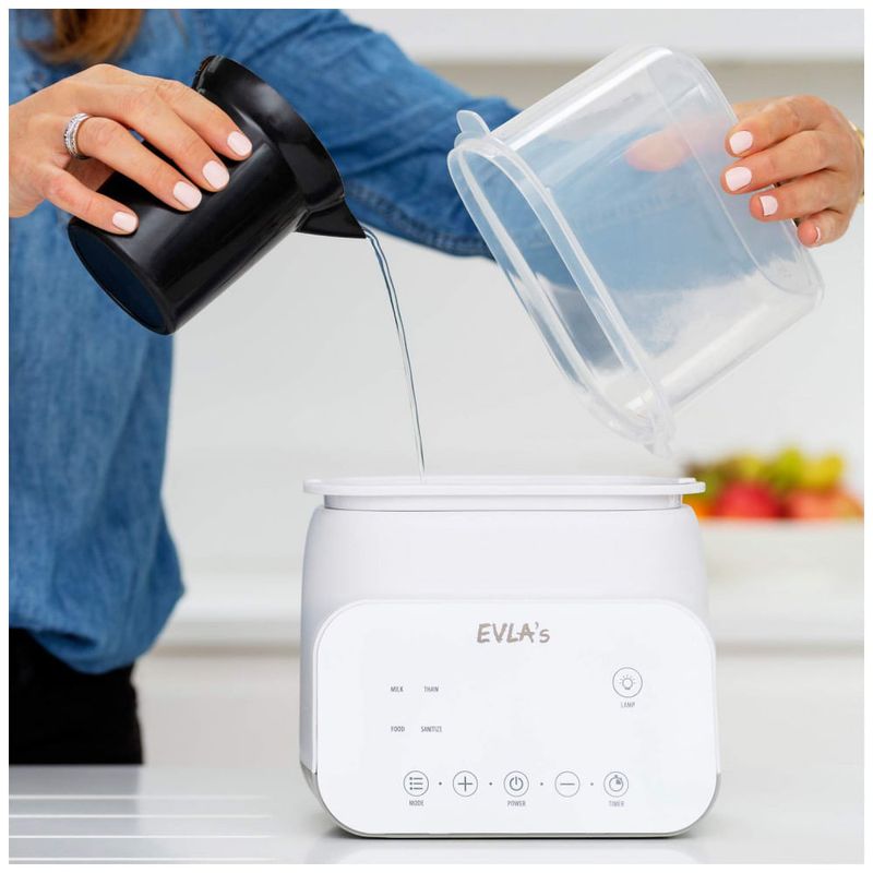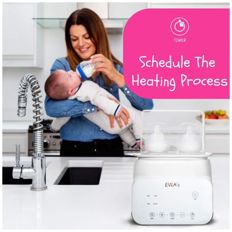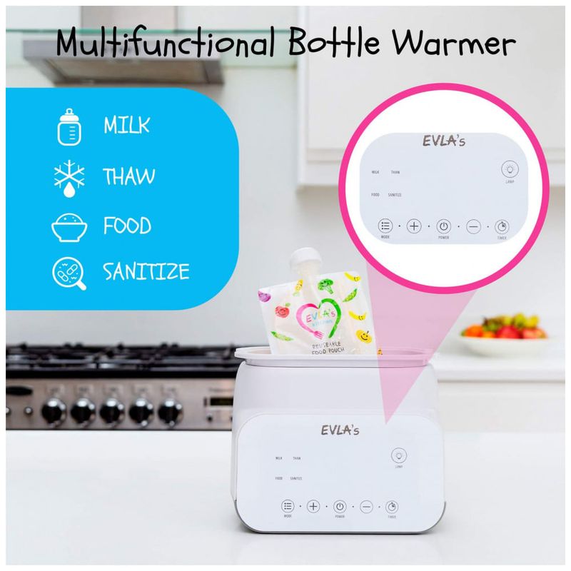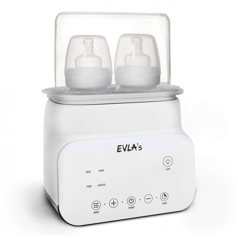 Leite pronto na temperatura perfeita sempre que o seu pequeno precisar Aquecedor de Biberões Duplo Inteligente e Multifuncional O Aquecedor de Biberões EVLAs é um dispositivo com múltiplas funções, económico, fácil e rápido de usar É tanto um aquecedor de mamadeira quanto desinfetante. Você pode descongelar, aquecer leite ou fórmula sem perder a nutrição, aquecer, descongelar alimentos e também atua como um desinfetante de garrafas.
