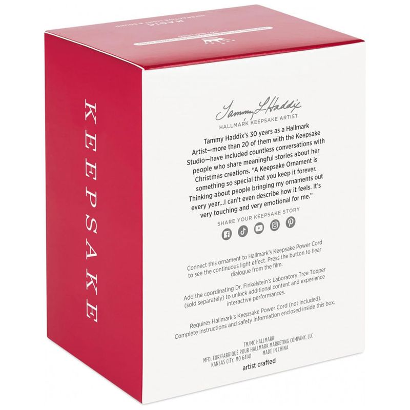 Traga um pouco da misteriosa Halloween Town para sua decoração natalina com este enfeite Hallmark Keepsake inspirado no enigmático Dr. Finkelstein do clássico "The Nightmare Before Christmas" de Tim Burton. Este ornamento interativo vem com luzes contínuas e efeitos sonoros, reproduzindo falas memoráveis do filme, proporcionando uma experiência imersiva. Ao combiná-lo com o topo de árvore Dr. Finkelstein’s Lab (vendido separadamente) e o Keepsake Power Cord (vendido separadamente), você desbloqueia conteúdos adicionais exclusivos e performances interativas. Artista-crafted por Tammy Haddix, a peça é detalhada, feita em plástico brilhante, e vem em embalagem para presente, perfeita para fãs e colecionadores da Disney.