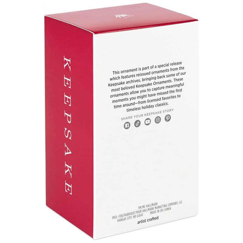 O Rei Abóbora está pronto para proporcionar um feriado assombrado a todos que apreciam o filme clássico moderno da Disney Tim Burton, "O Estranho Mundo de Jack", com este enfeite de árvore de Natal. Vestido com seu traje de "Papai Cruel", Jack Skellington fica em cima de uma abóbora brilhante e nevada, segurando um presente festivo.Adicione um toque da Halloween Town à sua decoração natalina com este enfeite de Natal Hallmark Keepsake do personagem Jack Skellington, do filme clássico moderno "O Estranho Mundo de Jack" de Disney Tim Burton. O Rei Abóbora aparece vestido como "Sandy Claws", segurando um presente de Natal, sobre uma abóbora iluminada com neve e glitter. Este enfeite plástico, originalmente lançado em 2019, retrata com detalhes excepcionais e artesanato apurado uma peça perfeita para preservar memórias especiais, celebrar marcos pessoais e interesses únicos. O enfeite inclui um suporte para pendurar e vem em caixa para presente, garantindo fácil armazenamento e preservação.