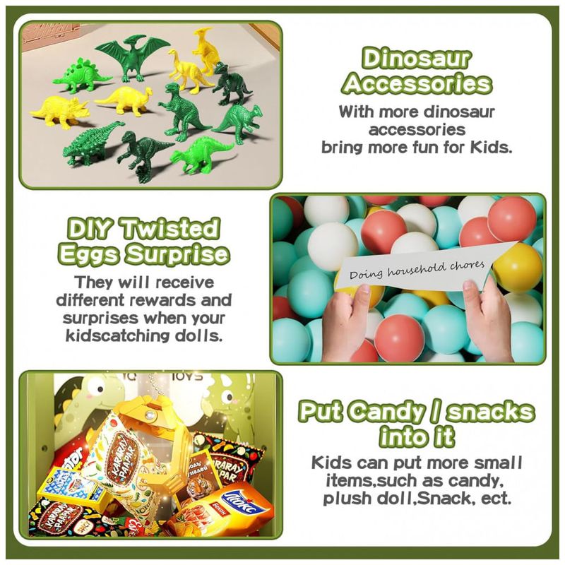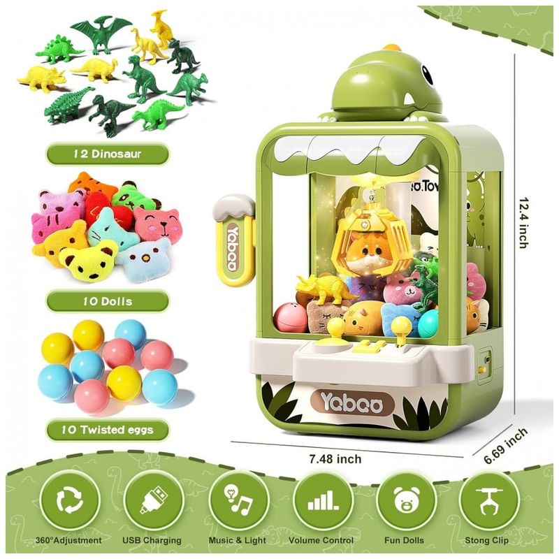 A Máquina de Garra Dinossauro Verde da Eohemeral é um mini arcade eletrônico projetado para entreter crianças a partir de 3 anos, reunindo diversão e desenvolvimento de habilidades motoras em um só brinquedo. Seu design encantador, com cores vibrantes e dinossauros amigáveis, captura imediatamente a atenção dos pequenos, enquanto a combinação de música, luzes e efeitos sonoros cria uma atmosfera de jogo autêntica. O equipamento vem completo com 10 pelúcias, 12 acessórios de dinossauro e uma cabeça de dinossauro destacável, permitindo que as crianças ampliem a brincadeira com diferentes objetos e surpresas. O controle da garra é fácil de usar, com rotação de 360° e movimentos suaves, promovendo coordenação motora, concentração e interação entre pais e filhos. Além disso, a máquina pode ser alimentada por cabo USB ou por 3 pilhas AA, oferecendo flexibilidade de uso. É o presente ideal para aniversários, Natal e qualquer ocasião especial, garantindo horas de diversão e competição saudável entre amigos e familiares.