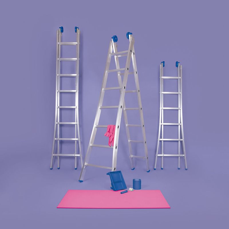 A A Escada Extensiva Mor 2x7 oferece três modos de utilização, os quais podem se adequar a sua necessidade: extensível, aberta e simples. Com 3 anos de garantia, ela suporta até 150 Kg e alcança até 3,65 metros. Sua estrutura é confeccionada 100% em alumínio produzido na Mor, garantindo melhor qualidade estrutural ao produto, pois há controle de todo processo de fabricação. Além disso, o alumínio é um material leve e durável mesmo em áreas litorâneas. A escada conta com rodas que facilitam o uso, sistema de articulação com encaixe de travamento que proporciona maior segurança e abertura cônica dos pés e sapatas antiderrapantes, garantindo mais estabilidade.