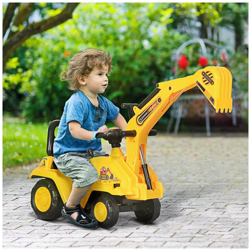 Escavadeira Frontal: Este brinquedo permite que as crianças operem uma escavadeira como trabalhadores da construção civil. Eles podem recolher pilhas de terra, areia ou neve utilizando a escavadeira frontal manualmente controlada, proporcionando uma experiência de construção envolvente.