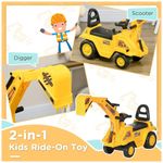Design 2 em 1:Esta escavadeira de passeio possui uma função dupla, podendo ser usada como escavadora ou para puxar um carrinho. Prenda uma corda na parte inferior e manipule a caçamba puxando uma alavanca. O carrinho avança utilizando a força dos pés.