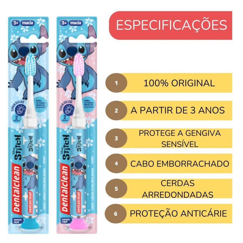 ESCOVA DE DENTE INFANTIL STITCH TIMER LIGHT - TEMPORIZADOR - LUZ - DENTALCLEAN