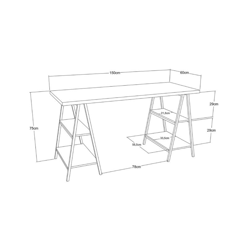 Escrivaninha Industrial Kuadra Cavalete 150 cm - Nogal/Preto