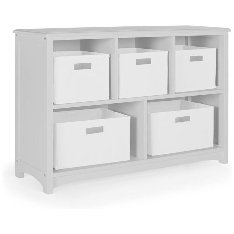 A Estante Clássica Guidecraft em cinza é uma unidade de armazenamento de prateleiras de um lado só, construída em madeira engenheirada e MDF com painéis traseiros fixos para posicionamento versátil como freestanding. Possui duas prateleiras profundas com divisórias removíveis criando 5 compartimentos grandes personalizáveis, bordas arredondadas e acabamento UV laqueado para limpeza com pano seco. Requer montagem adulta com ferramentas, ferragens e instruções inclusas, compatível com cestos não tecidos Guidecraft vendidos separadamente. Mede 91 cm de comprimento x 28 cm de profundidade x 61 cm de altura, com espessura de prateleira de 28 cm. Fabricada pela Guidecraft, modelo G87807.