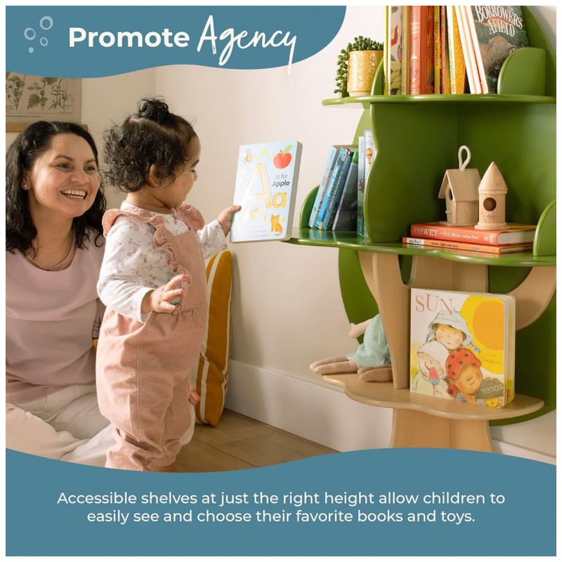 A Guidecraft tem longa atuação no desenvolvimento de mobiliário infantil e brinquedos educativos, com foco em madeira de qualidade, segurança e incentivo à autonomia. A proposta da Kids Tree Bookshelf alinha-se a princípios Montessori ao manter livros visíveis, acessíveis e organizados em uma estrutura convidativa e proporcional às crianças.?