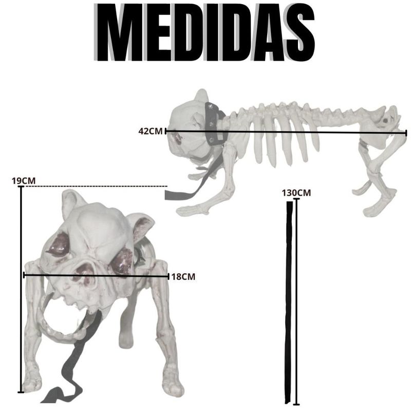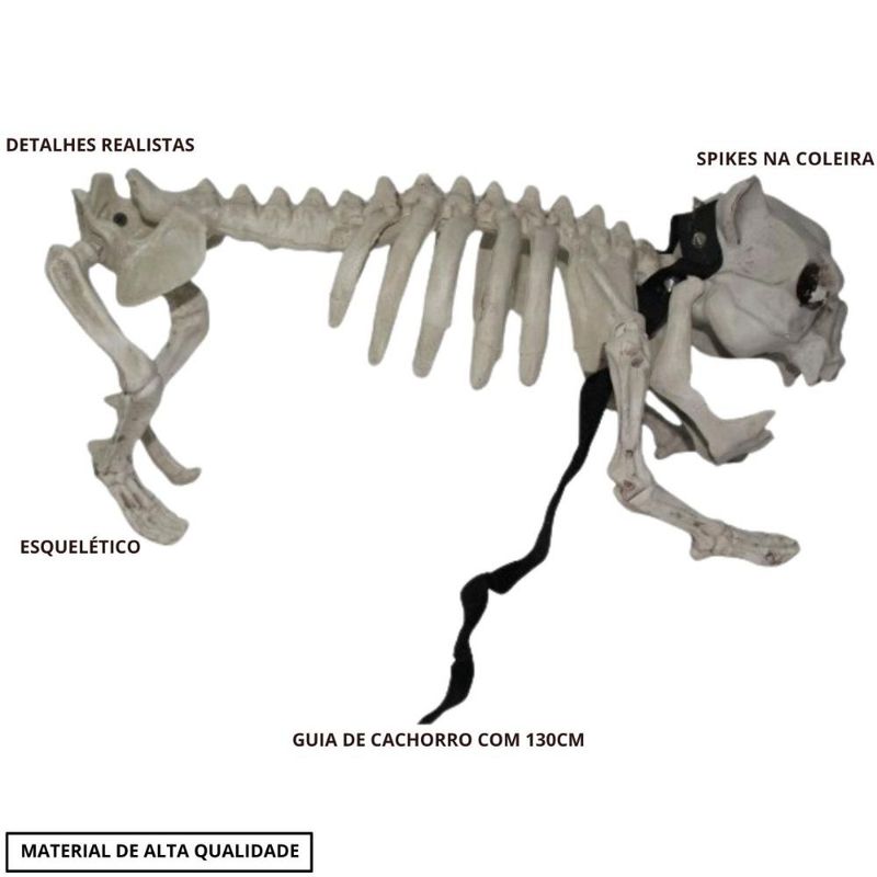Dê um toque aterrorizante à sua decoração de Halloween com o "Esqueleto de Cachorro". Este acessório incrivelmente detalhado é perfeito para criar um ambiente sombrio em festas temáticas ou eventos assustadores. Com seu visual esquelético realista, ele apresenta detalhes impressionantes que imitam um cão de ossos. Possui uma coleira estilosa com spikes e uma guia de 130cm, proporcionando ainda mais autenticidade à peça. Feito com material de alta qualidade, é uma decoração durável, ideal tanto para ambientes internos quanto externos.