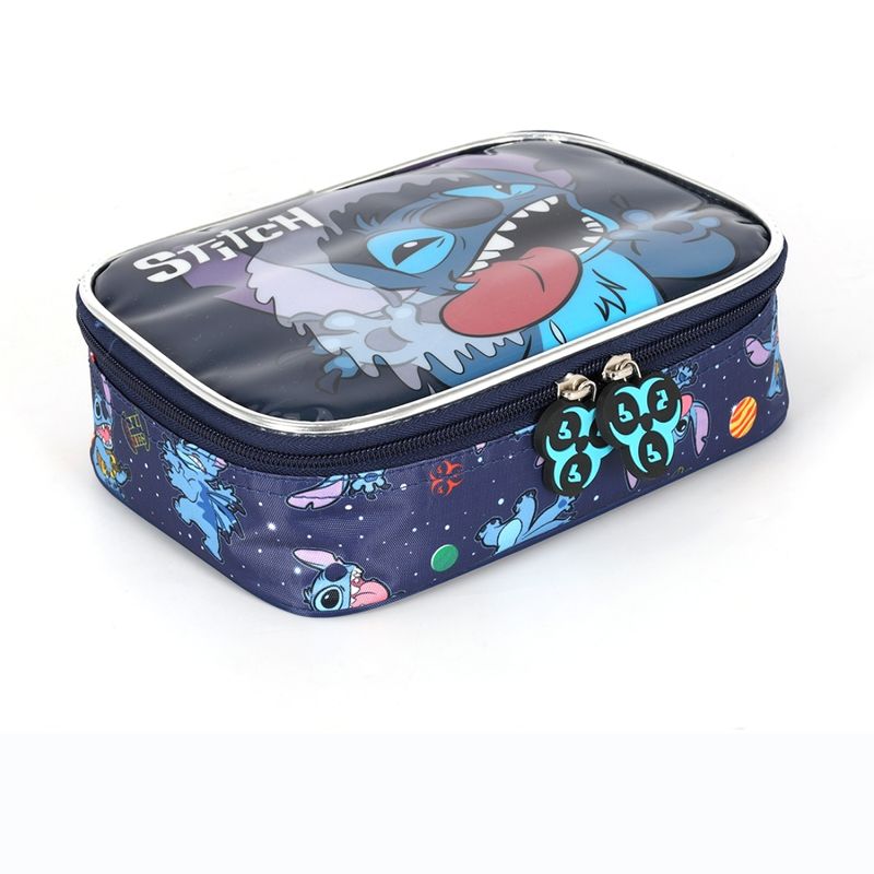 - Frente em PVC do personagem Stitch: Adiciona um detalhe encantador e especial ao estojo.
