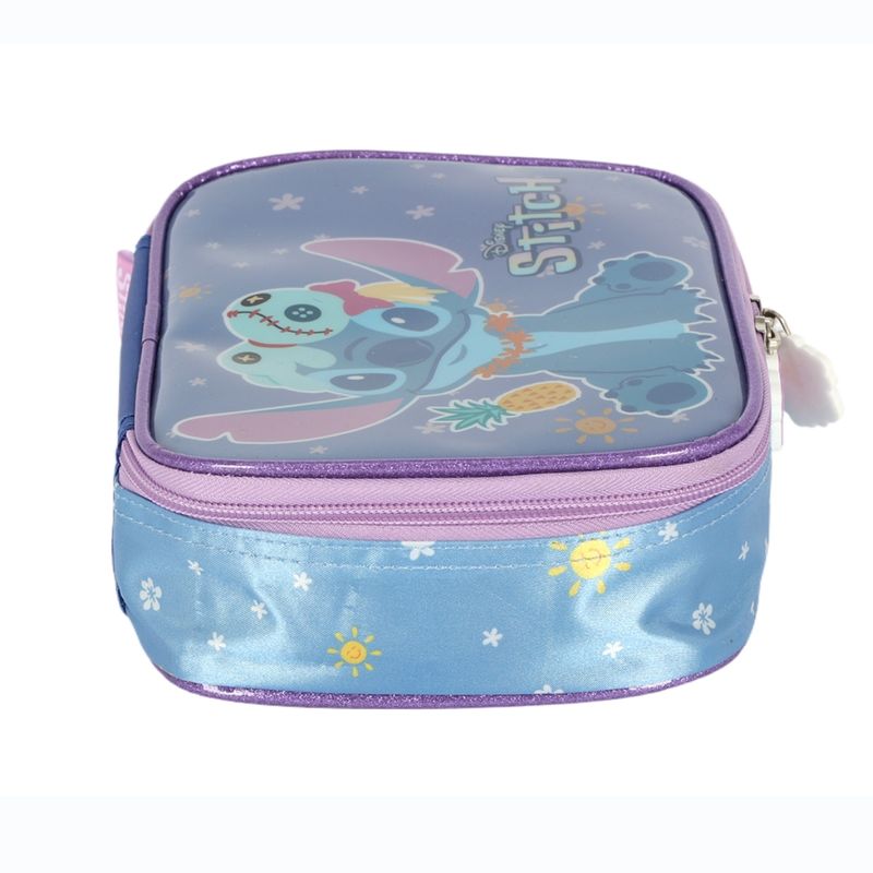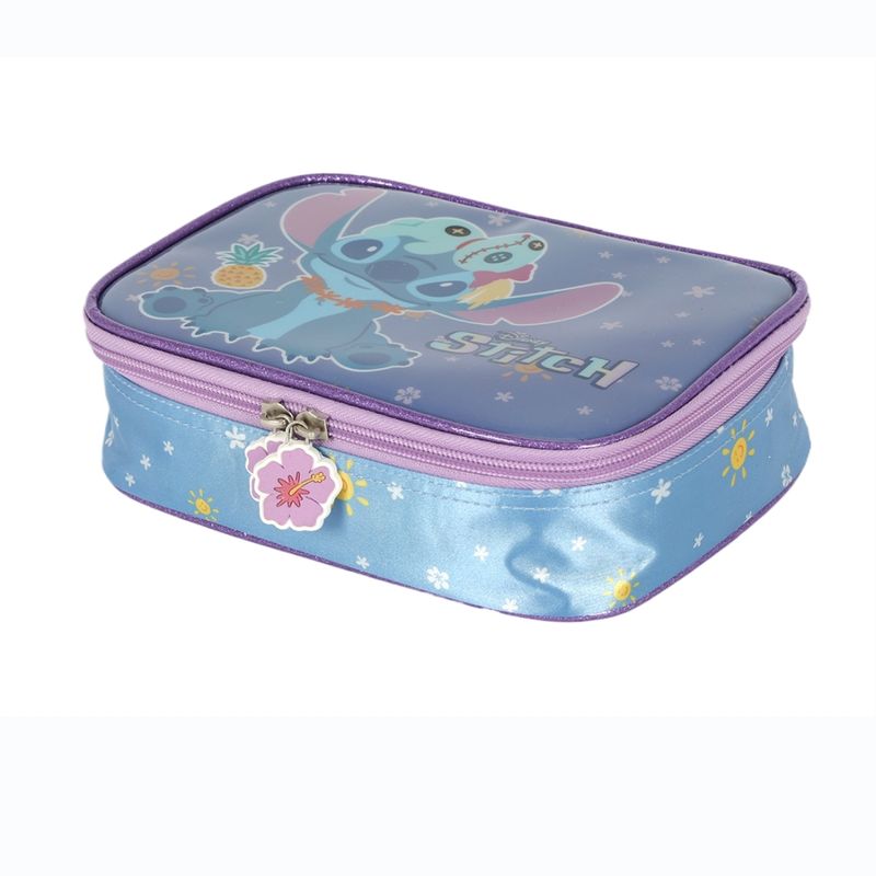 - Frente em PVC do personagem Stitch: Adiciona um detalhe encantador e especial ao estojo.