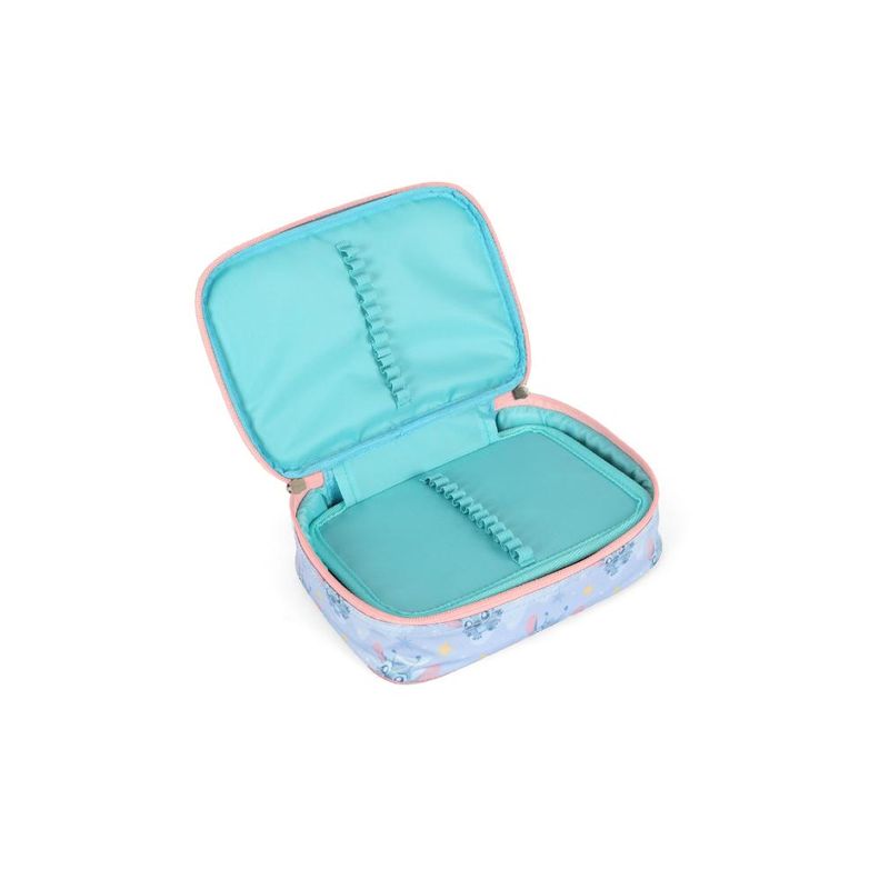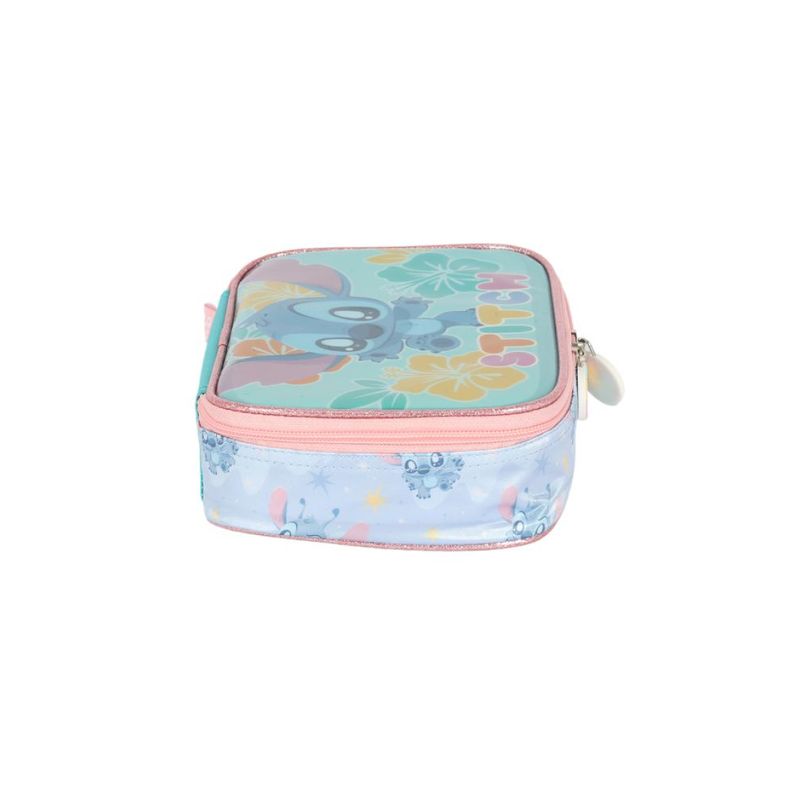 O Estojo Box EI42404SC faz parte da coleção infantil do Stitch, trazendo design exclusivo, moderno e funcional, desenvolvido para oferecer praticidade e organização no transporte de lápis, canetas e pequenos materiais escolares.Confeccionado em poliéster resistente e durável, conta com logo e zíper personalizado, além de espaço para até 100 pens e uma divisória interna, que garantem ainda mais praticidade e organização. Possui dimensões de 21 x 15 x 6 cm, capacidade aproximada de 1,5 litro, sendo classificado como estojo médio, ideal para uso escolar e atividades extracurriculares.Dicas de uso: ideal para estudantes que precisam transportar material escolar de forma organizada. Pode ser utilizado na escola, em cursos ou atividades extracurriculares.Dicas de limpeza: limpar com pano macio levemente umedecido em água e sabão neutro. Evite produtos químicos, escovas de cerdas duras ou contato prolongado com umidade para preservar o material.
