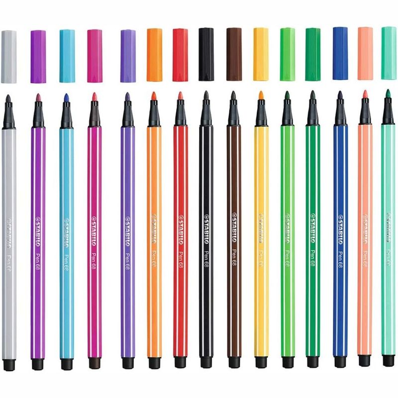 LIVROS E PAPELARIAMATERIAIS ESCOLARESEstojo com 15 Canetas Stabilo Colorida Pen 68 Premium