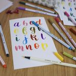 A ponta pincel da caneta Pen 68 Brush é ideal para quem quer entrar de vez no mundo do brush lettering. Colocando pouca força entrega linhas delicadas ao papel, com mais força as linhas ficam mais acentuadas. Impressiona pela grande gama de cores brilhantes. Graças à tinta à base de água, também é possível criar efeitos de aquarela e mistura de cores.