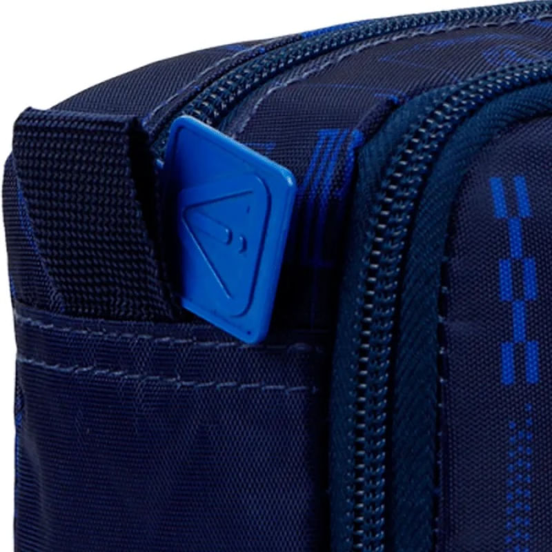 Produzido em poliéster resistente, possui 2 compartimentos para melhor organização. Fechamento em zíper com puxador personalizado. Produto certificado.