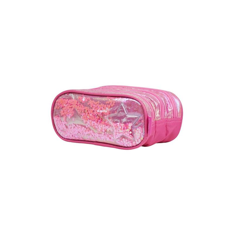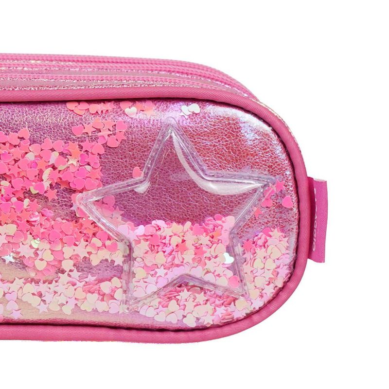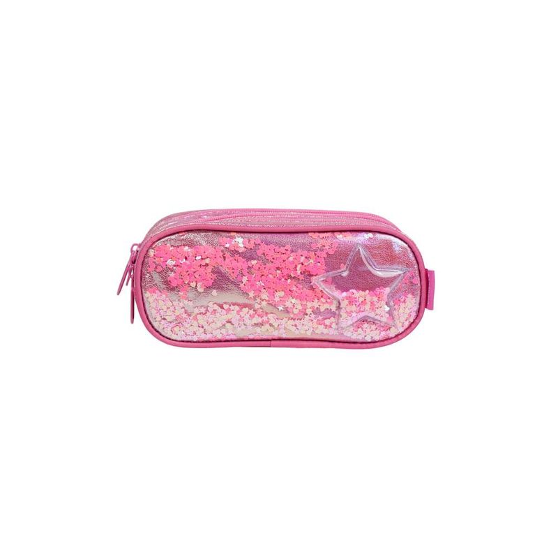 Além disso, o estojo tem uma estrutura firme, zíperes resistentes e espaço suficiente para comportar desde lápis e canetas até itens maiores, como tesoura, cola, apontador e marca-textos.Visual Que Brilha e EncantaO painel frontal de PVC transparente com confete de estrelas cria um efeito brilhante que mexe com a imaginação. O material iridescente do corpo dá um ar ainda mais encantado, combinando com o tema Unicórnio Confetti da linha. É o tipo de estojo que vira destaque na mesa da escola — visualmente marcante, diferente e cheio de vida.