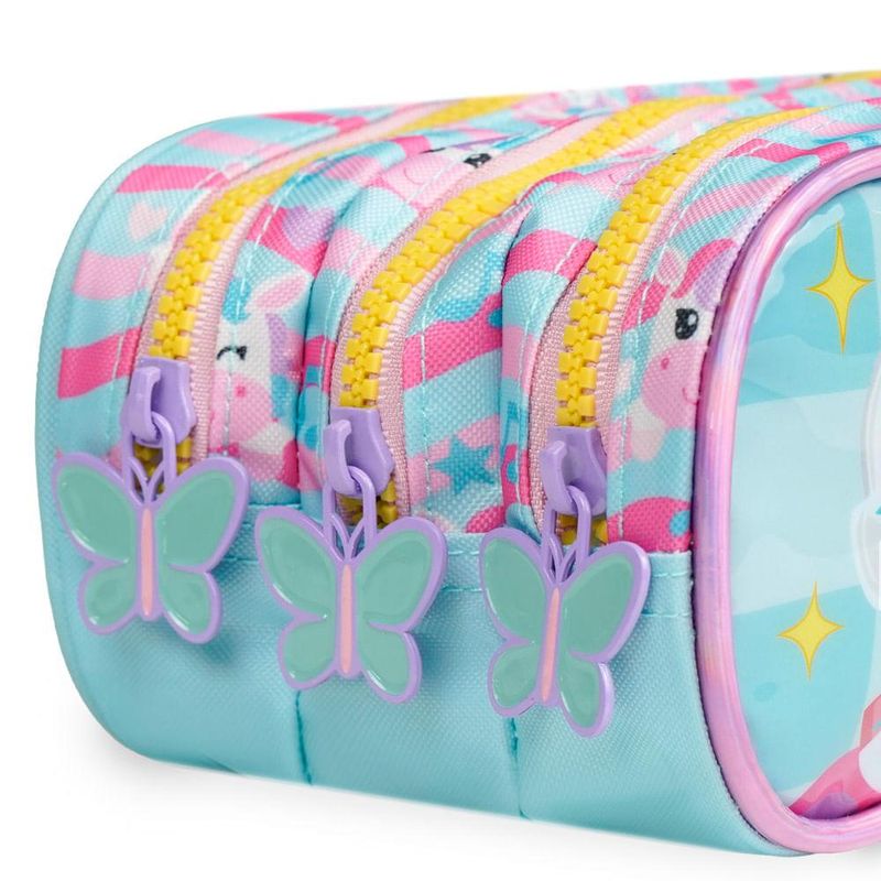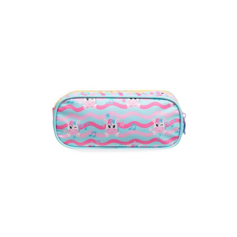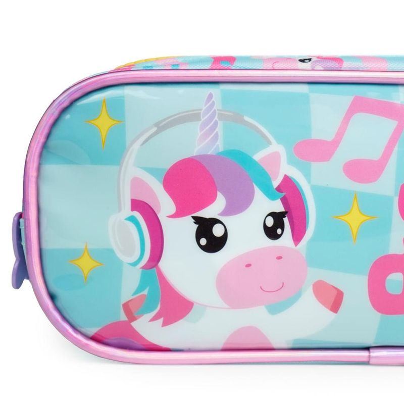 O Estojo Escolar Feminino com 3 Compartimentos Unicórnio foi criado para organizar a rotina escolar com leveza, cor e aquele toque divertido que as crianças amam. Ele reúne três compartimentos separados, painel de PVC personalizado e estampa exclusiva do Unicórnio Just Dance — uma combinação que deixa o dia a dia mais prático e cheio de personalidade.Organização e Espaço InternoCom 3 compartimentos independentes, o estojo facilita separar lápis, canetas, marcadores, borrachas e pequenos acessórios sem bagunça. Cada divisão ajuda a manter tudo visível e acessível, ideal para crianças que gostam de ter tudo organizado na hora das atividades e dos estudos.Design que EncantaO grande destaque visual fica por conta do painel frontal em PVC com ilustração aplicada do Unicórnio Just Dance, que brilha e chama atenção. Além disso, o zíper vem com puxadores em formato de borboleta, um detalhe exclusivo que deixa o produto ainda mais especial e fácil de abrir pelas mãos pequenas.Durabilidade e Materiais BagaggioFabricado em material resistente, o estojo aguenta o uso diário, transporte na mochila e todos os movimentos típicos da rotina escolar. É uma opção pensada para acompanhar o ano inteiro com segurança e sem desgaste rápido.Praticidade para a Rotina EscolarLeve e fácil de transportar, o modelo é ideal para quem busca estojo infantil espaçoso, com boa divisão interna e estética divertida. Ele combina com mochilas da mesma linha e completa o kit escolar com estilo.FAQCabe bastante material escolar?