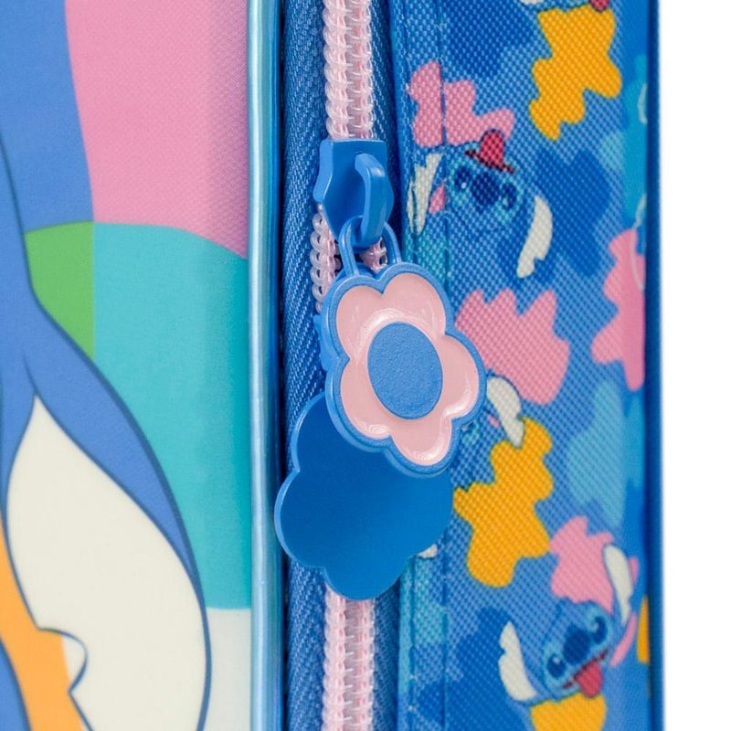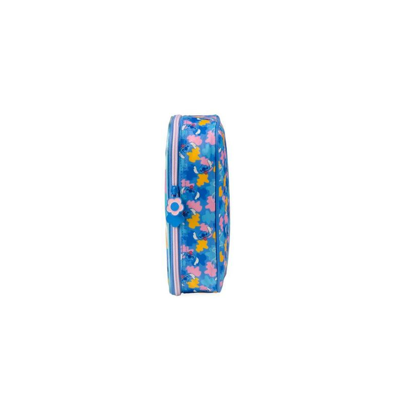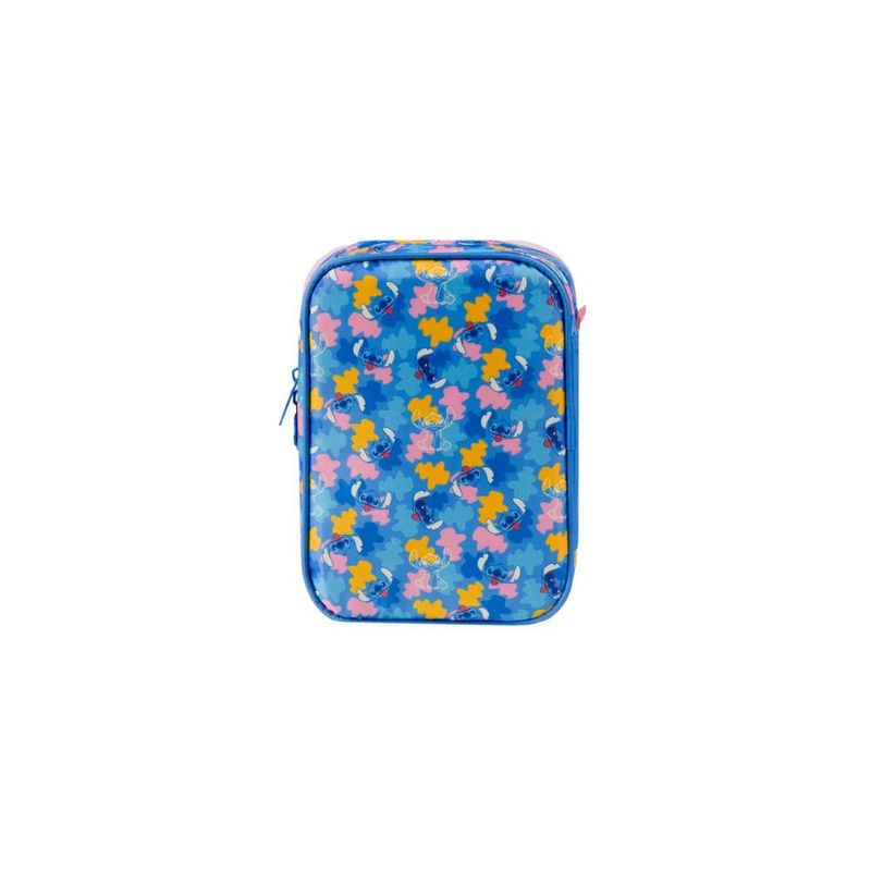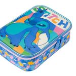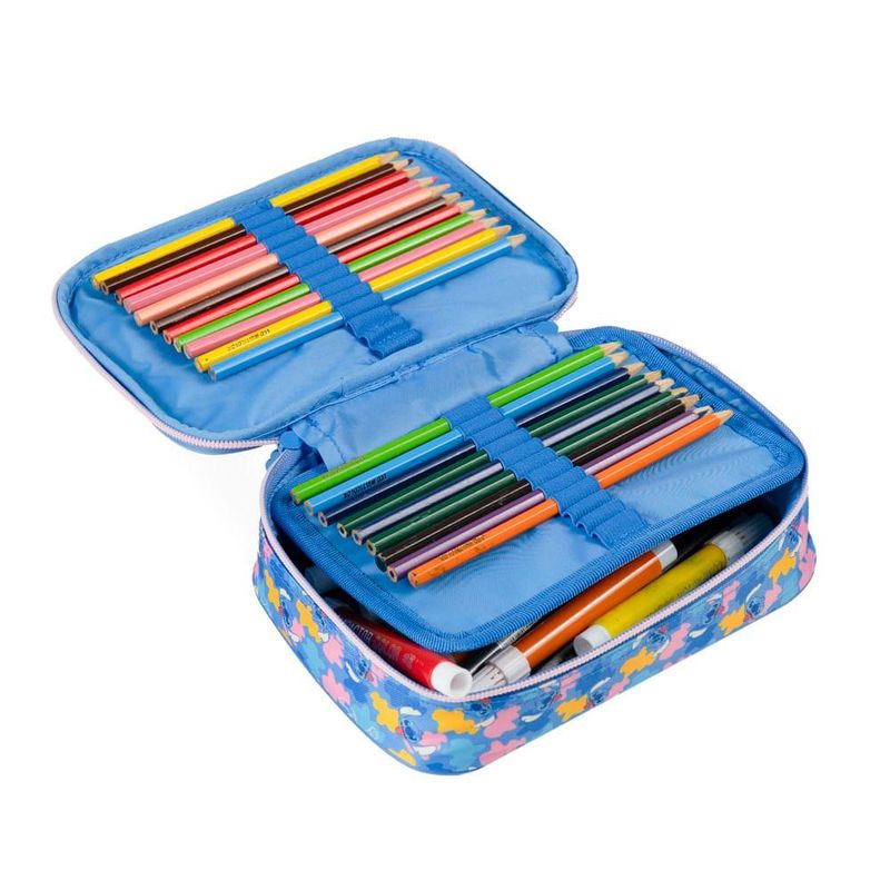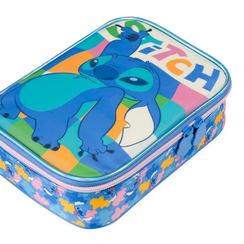 O Estojo Escolar Feminino Grande Stitch Azul é a escolha certa para quem precisa de muito espaço, organização prática e um visual irresistível para acompanhar a rotina escolar. Com 2 compartimentos grandes, elásticos organizadores e capacidade para comportar até 100 lápis e canetas, ele resolve o caos da mochila em um único acessório. O diferencial deste modelo dentro do mix Bagaggio é o tamanho amplo aliado ao painel frontal com o Stitch em destaque, criando um estojo funcional, durável e com personalidade.Organização e Espaço InternoO grande destaque deste estojo é sua estrutura interna pensada para organizar tudo: lápis, canetas, marca-textos, borrachas, apontador e acessórios de escrita. Os elásticos individuais mantêm cada item firme no lugar, facilitando o uso na mesa de aula e evitando que tudo se misture. Os dois compartimentos permitem separar materiais por tipo ou atividade, ajudando a criança a se manter organizada ao longo do dia.Praticidade para o Dia a Dia EscolarPerfeito para quem leva muitos materiais, o estojo comporta até 100 unidades, sem perder a forma e sem ficar desconfortável para carregar. A abertura total facilita visualizar tudo de uma vez, deixando o acesso mais rápido durante as aulas. É ideal para estudantes que usam muitas cores, fazem desenhos, lettering, arte ou atividades que exigem mais variedade de materiais.Durabilidade e Detalhes do DesignProduzido com material resistente e acabamento impecável, o modelo traz o Stitch em uma arte exclusiva que se destaca no painel frontal. A combinação de cores vibrantes e detalhes modernos faz com que o estojo seja não só funcional, mas também uma peça que reflete o estilo da criança. A promessa central do produto é entregar organização máxima com visual marcante, sendo a opção mais completa da linha Stitch.FAQCabe mesmo 100 lápis e canetas?