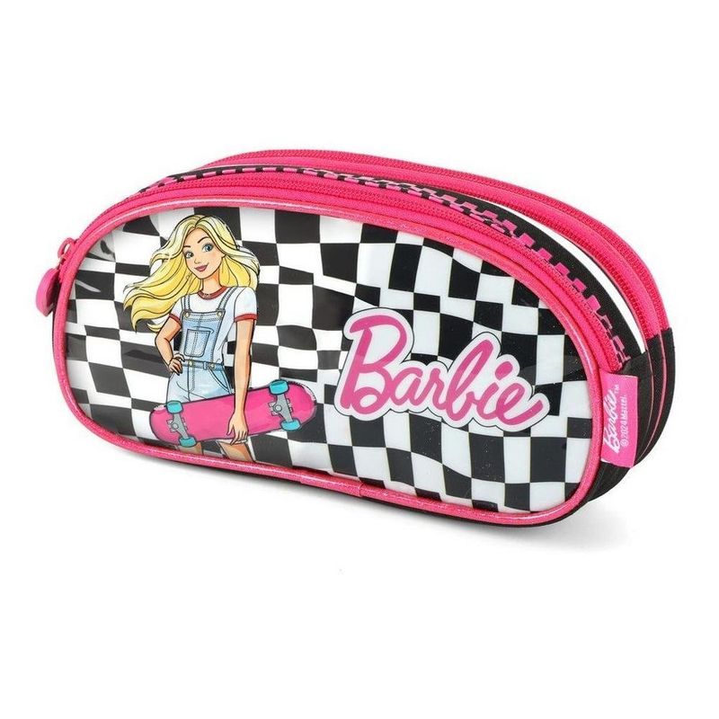 O Estojo Escolar Infantil Triplo Barbie Skatista Xadrez é perfeito para meninas cheias de atitude que adoram estar na moda até mesmo no material escolar. Com uma combinação de design xadrez moderno e a Barbie em sua versão skatista, este estojo é um verdadeiro charme!