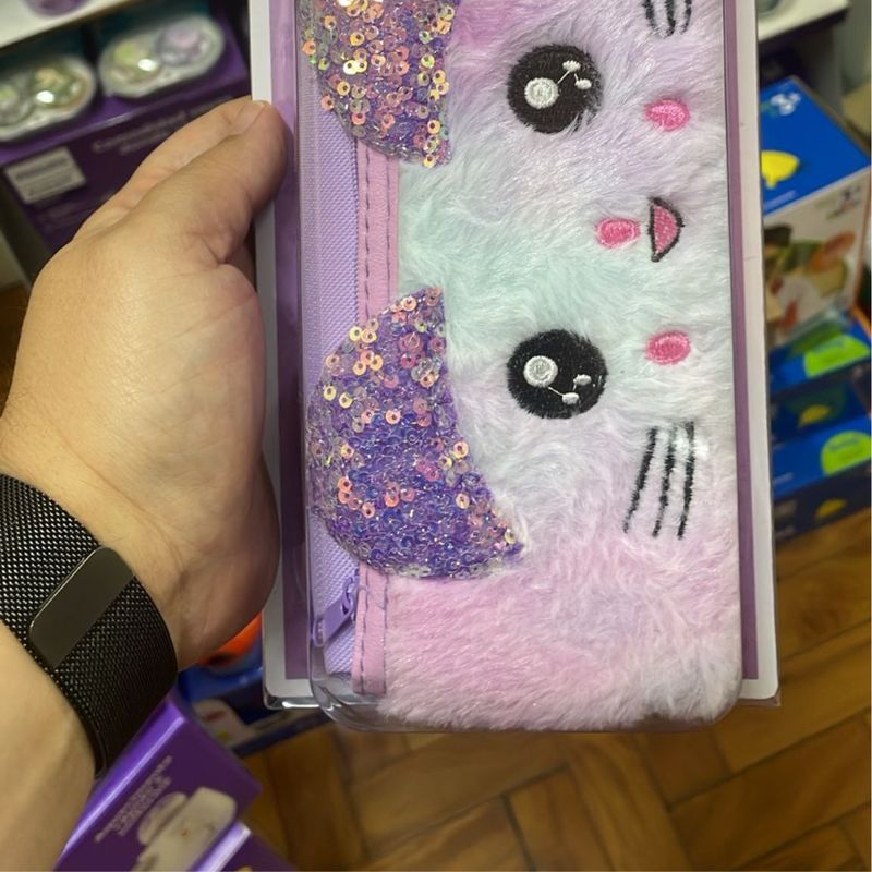 Este lindo estojo da linha Fofy é perfeito para quem adora itens fofos e funcionais! Com um design encantador de gatinha, ele se destaca por suas orelhinhas de gatinho com lantejoulas, dando um toque especial e brilhante. Na cor lilás suave, o Estojo Miau oferece espaço ideal para armazenar seus lápis, canetas e outros materiais escolares com organização e estilo. Feito com materiais de alta qualidade, é resistente e prático para o uso diário, com um fechamento por zíper que garante segurança.