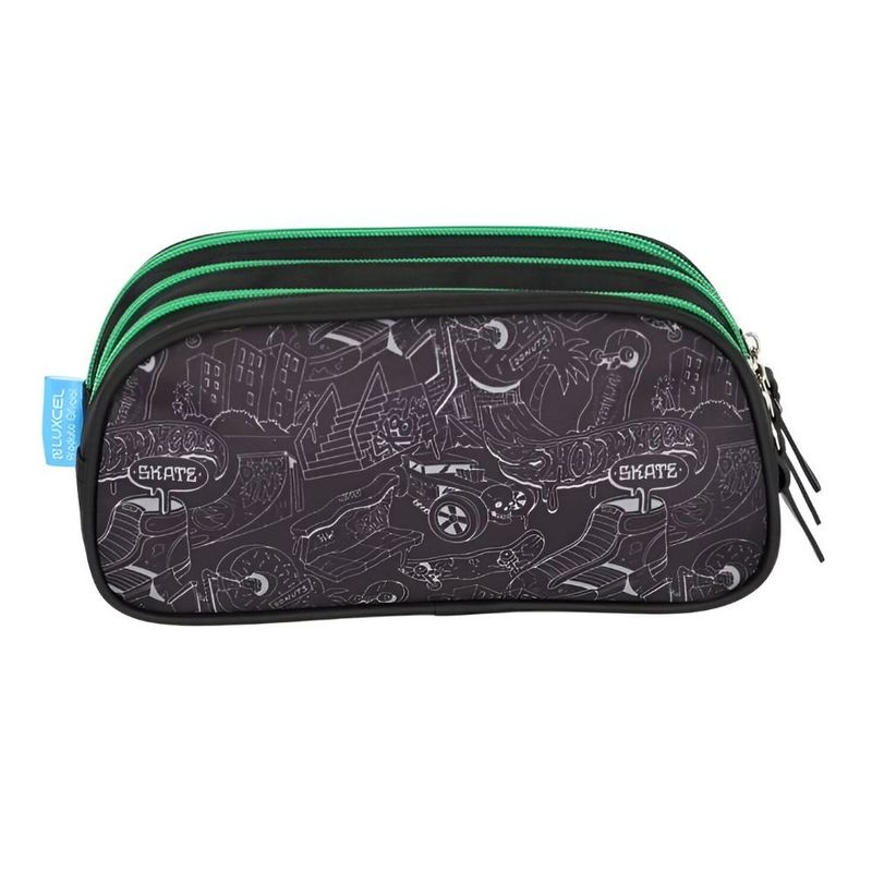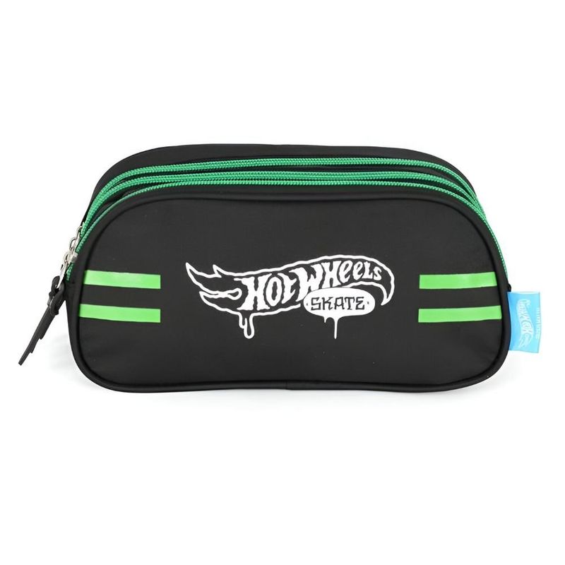 O Estojo Escolar Triplo Hot Wheels Skate Finger Verde Luxcel é um acessório prático e estiloso, ideal para a organização do material escolar.