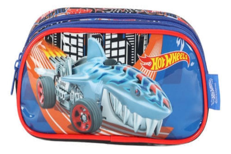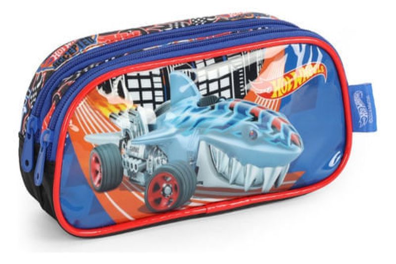 Confeccionado me material resistente, com dois compartimentos grandes para armazenar o material escolar do seu pequeno. Estampa frontal da Hot Wheels e viés em cor contrastante, levando muito estilo para rotina escolar.