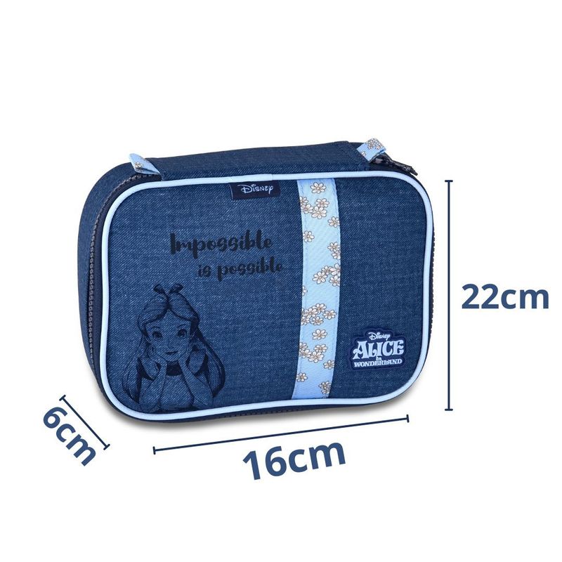 Entre na toca do coelho com estilo com nosso estojo de jeans inspirado na inesquecível aventura de Alice. Com um design vintage e detalhes mágicos, é o acessório ideal para estudantes e sonhadores. Este estojo não é apenas um lugar para guardar seus itens, mas um pedaço da magia de Wonderland que você pode levar consigo. Adicione um toque de fantasia ao seu dia a dia!