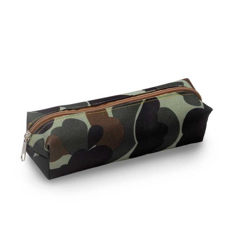Um estojo com um lindo design, estampa camuflada e muito espaço para suas canetas, borrachas e lápis.